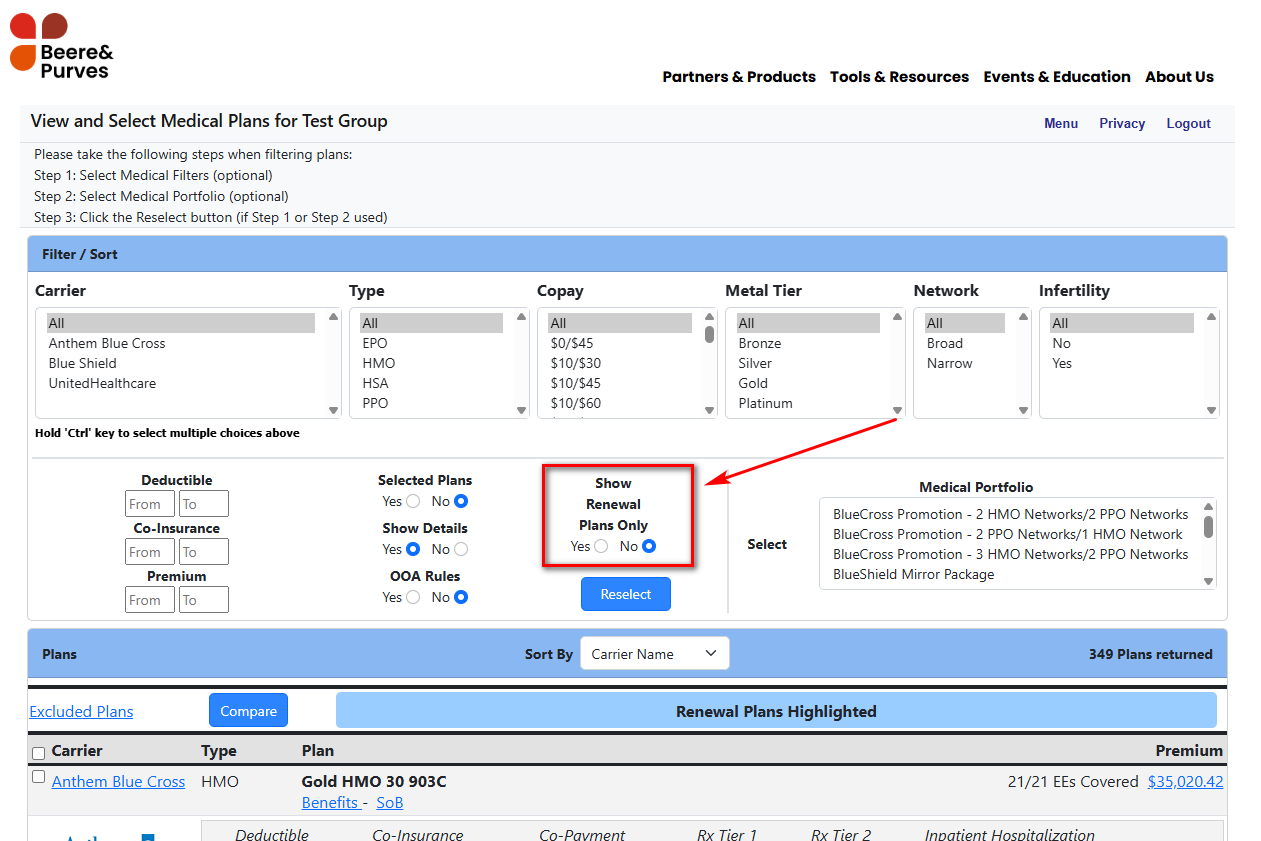 Update 2: New Renewal Plans Filter on the Medical Selection Page